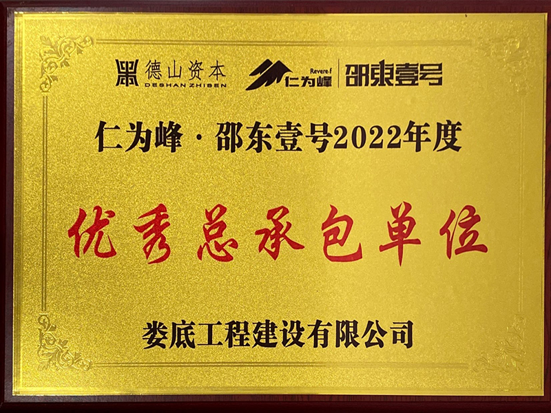 2022年度邵東壹優秀總承包單位獎牌