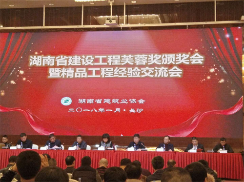 2018年1月19日,由湖南省建筑業協會舉辦的湖南省建設工程芙蓉獎頒獎會暨精品工程經驗交流會在長沙舉行。我司承建的婁底市孫水世家商住小區(怡河園)2#樓獲得湖南省建設工程質量最高獎—“芙蓉獎”殊榮。這是我司自市農業銀行綜合樓、市委市人民政府辦公樓1#、6#、7#、雙峰縣體育中心體育館喜獲“芙蓉獎”后,第四次獲得“芙蓉獎”殊榮。