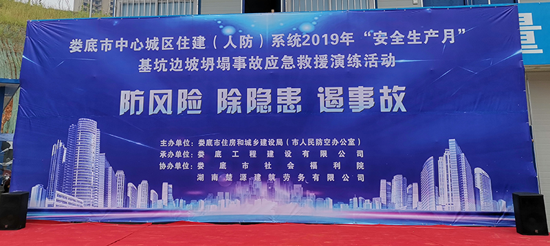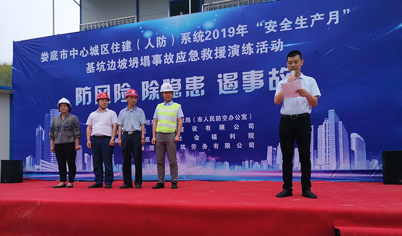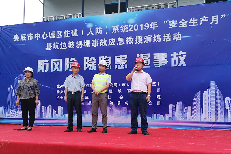 為深入貫徹黨的十九大和十九屆二中、三中全會(huì)精神,認(rèn)真學(xué)習(xí)貫徹習(xí)近平總書(shū)記關(guān)于安全生產(chǎn)的重要論述,為新中國(guó)成立70周年?duì)I造良好的安全生產(chǎn)環(huán)境,積極響應(yīng)省、市關(guān)于2019安全生產(chǎn)月活動(dòng)的有關(guān)文件要求,加強(qiáng)建筑工地應(yīng)對(duì)突發(fā)事件的處理能力,提高全員安全意識(shí),切實(shí)掌握應(yīng)急救援的技能、技巧,讓員工在事故發(fā)生時(shí)將傷害減少到最低。我司特承辦了由婁底市住房和城鄉(xiāng)建設(shè)局(人民防空辦公室)主辦的2019年“安全生產(chǎn)月”“防風(fēng)險(xiǎn)、除隱患、遏事故"建筑施工基坑坍塌事故應(yīng)急救援演練活動(dòng)。
